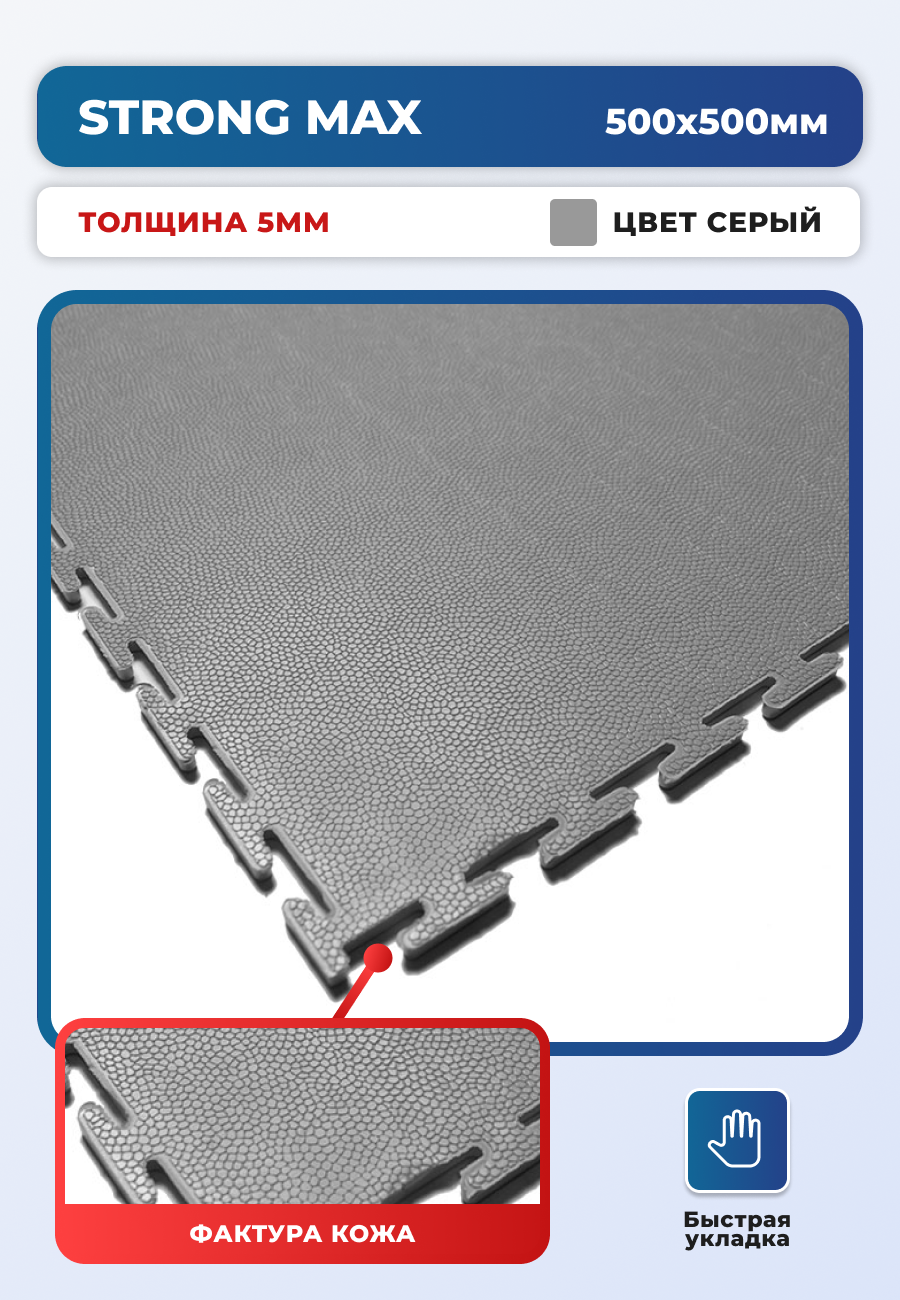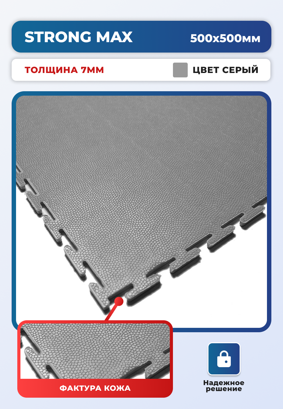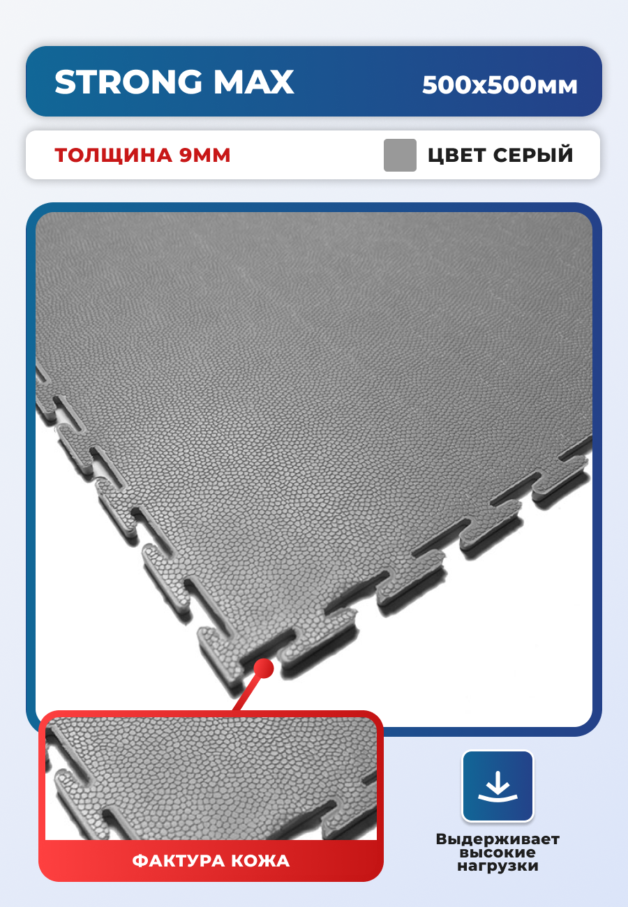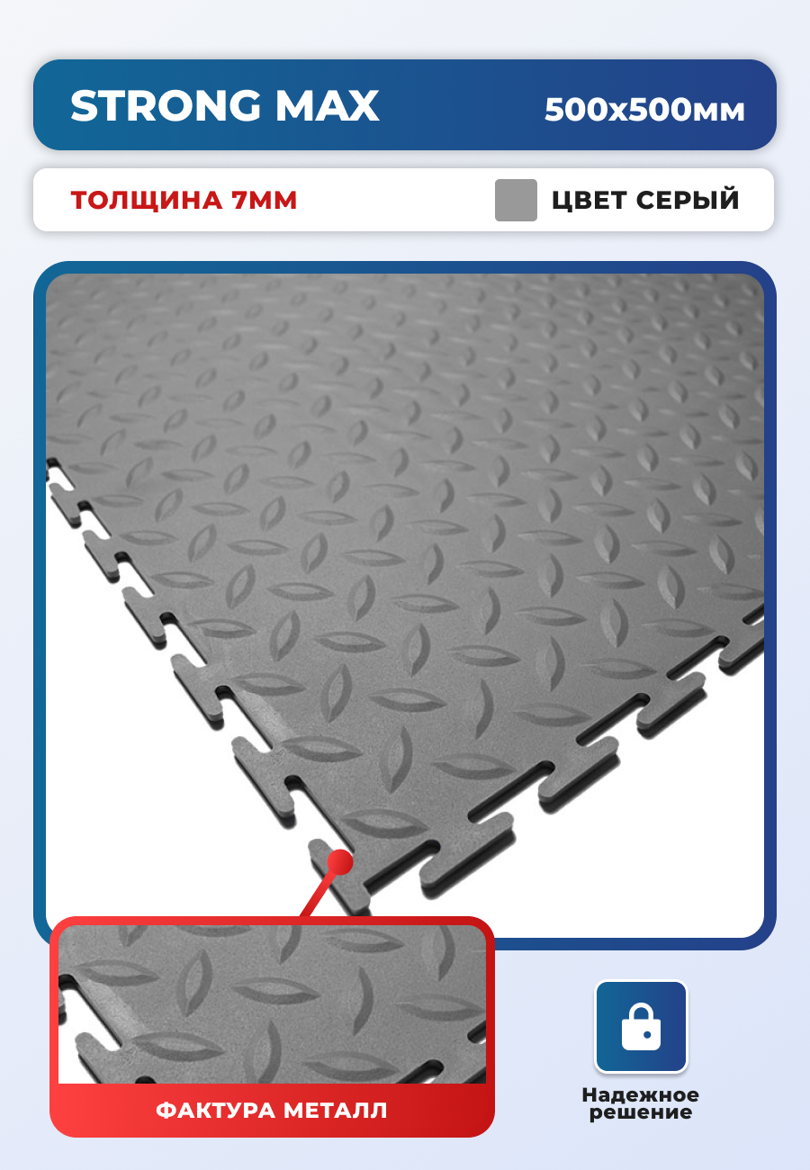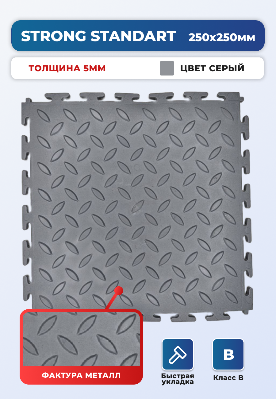 Модульное покрытие Strong Normal - легкое в укладке! Предназначено для промышленных объектов со сложными эксплуатационными условиями. Выдерживает повышенные динамические и статические нагрузки. Может использоваться в помещениях с агрессивной средой. Сфера применения – склады, промышленные цеха, автосервисы, спортивные объекты, офисы, торгово-развлекательные центры.